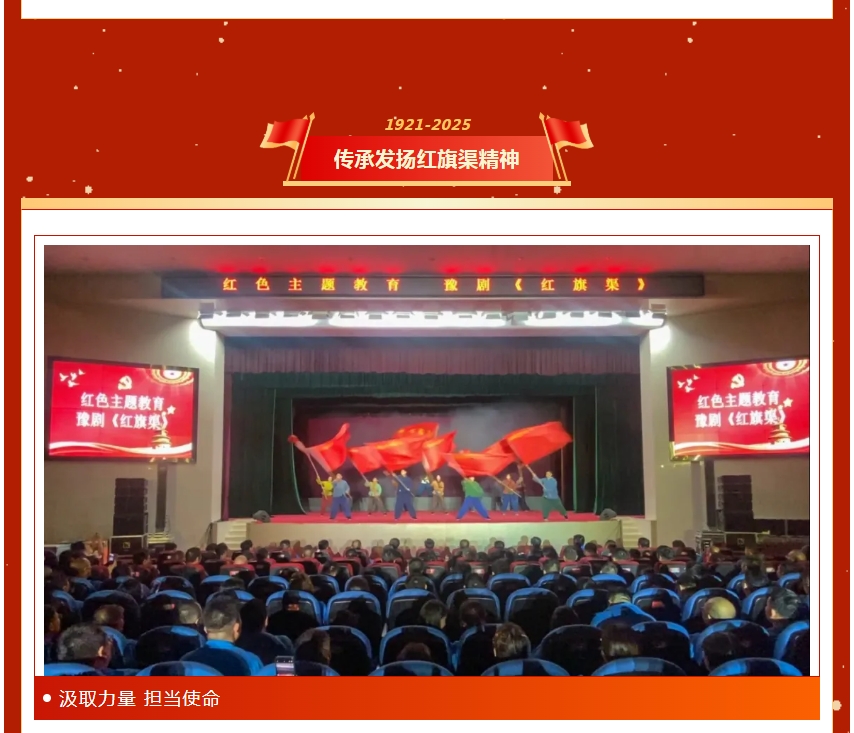 表彰大會(huì)后,全體參會(huì)人員共同觀看了由黨建共建單位河南豫劇三團(tuán)帶來(lái)的豫劇《紅旗渠》,自力更生、艱苦創(chuàng)業(yè)、團(tuán)結(jié)協(xié)作、無(wú)私奉獻(xiàn)的紅旗渠精神歷久彌新,大家在欣賞精彩演出的同時(shí),從中汲取澎湃的精神力量。